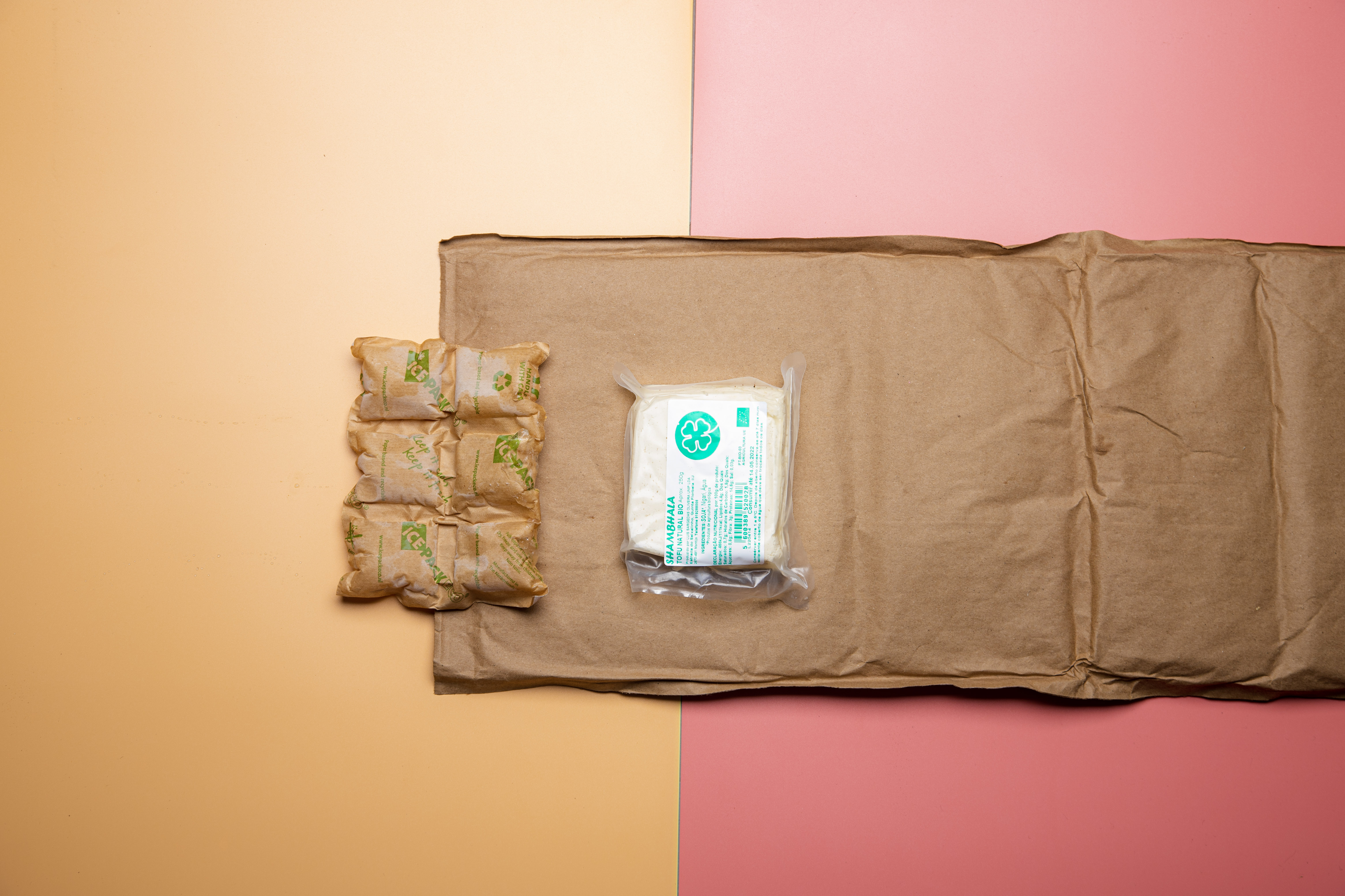 Los empaques utilizados son casi exclusivamente de papel y vidrio (incluso las bolsas térmicas), y se reduce al mínimo el desperdicio de alimentos y embalajes, que además son fácilmente reciclables. Los clientes también pueden devolver los frascos de vidrio limpios y desinfectados para su reutilización.