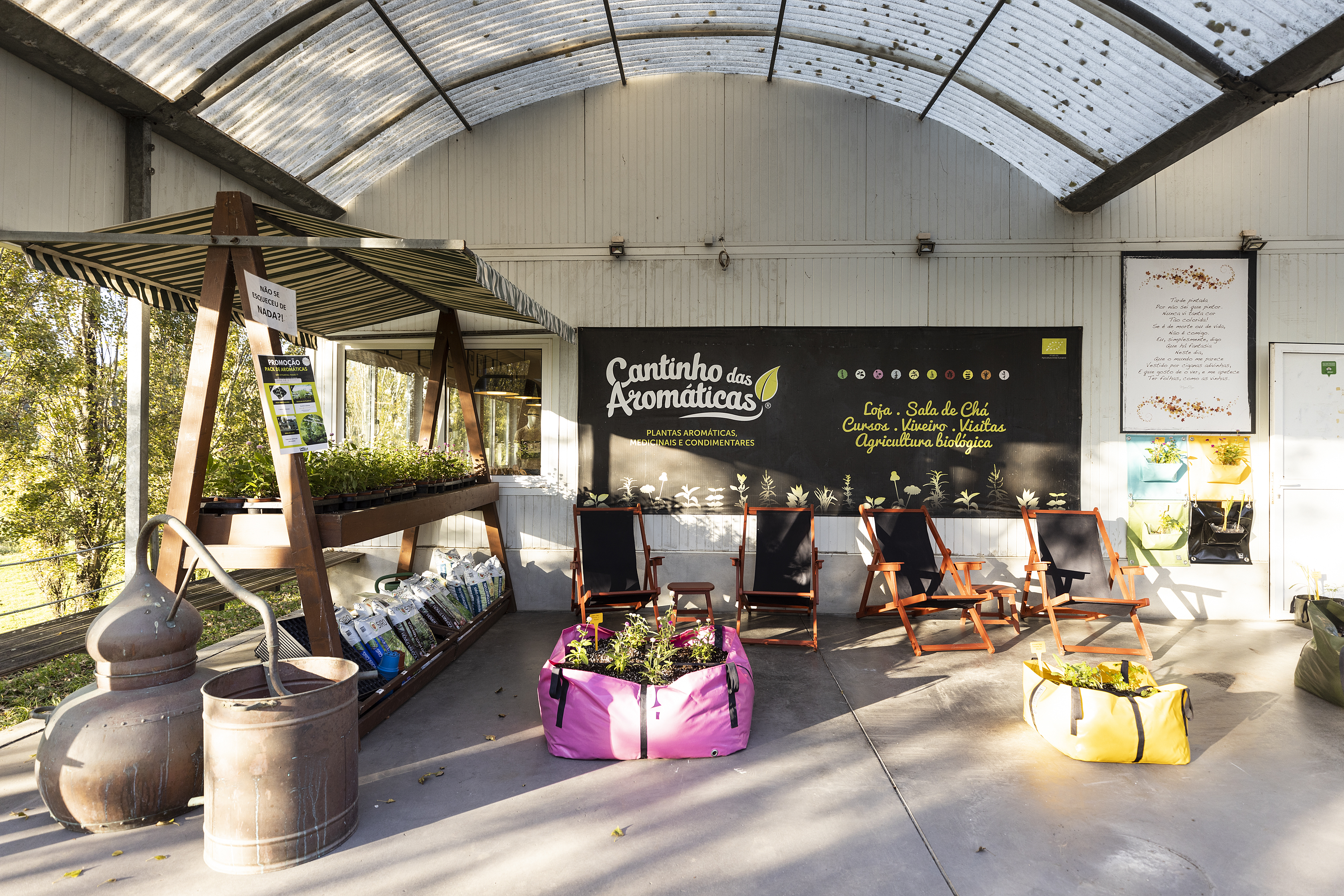 Cantinho das Aromáticas was the first nursery in Portugal exclusively dedicated to the production of over 150 species of aromatic plants. In 2007 it began producing and regularly exporting several tons of aromatic plants in bulk, mainly for the cosmetics and pharmaceutical organic industries. Since 2014 it has had its own brand, with a range of over 60 products, including infusions, tisanes, teas, and condiments, packaged and in bulk.