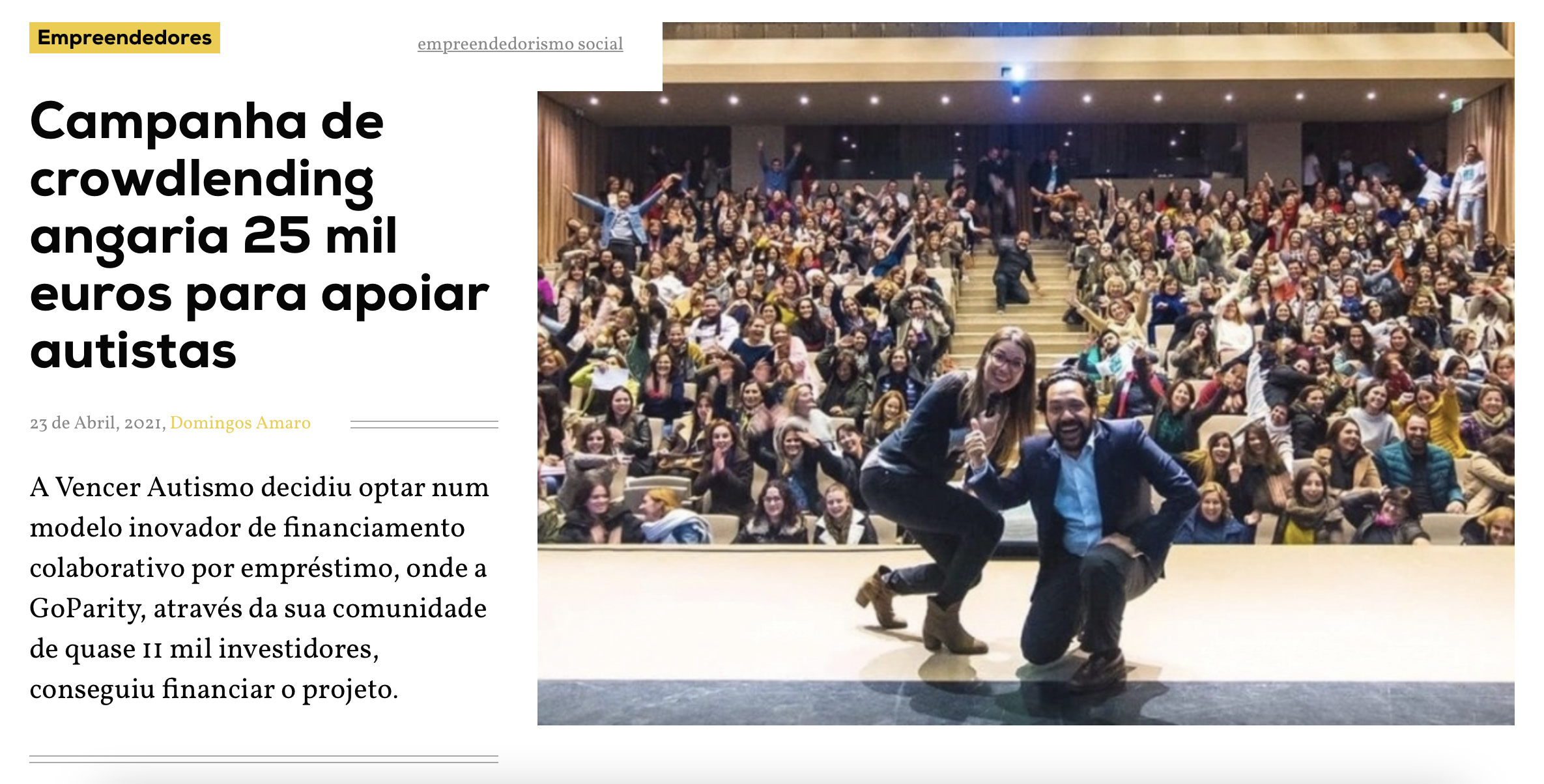 Campanha de crowdlending angaria 25 mil euros para apoiar autistas.